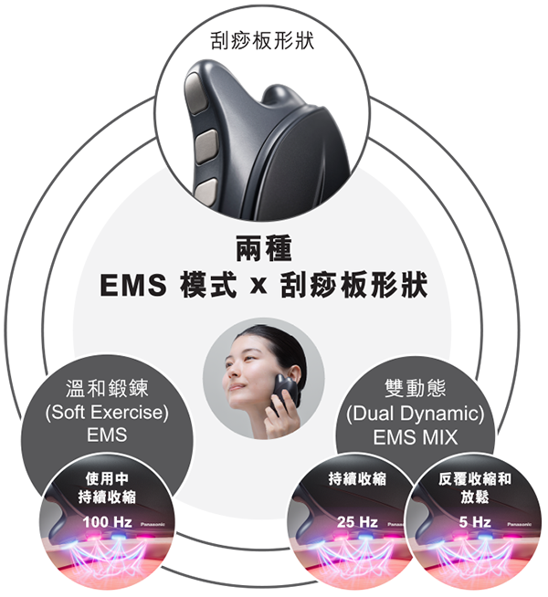 從美容師手法中學習到的獨特技術,以兩種 EMS 模式加上刮痧板的形狀,實施全方位提拉緊緻護理。