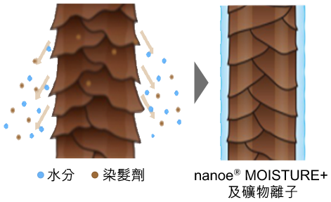 nanoe® 和礦物離子能夠緊緻毛鱗片,減少對頭髮的摩擦損傷,例如分叉。
