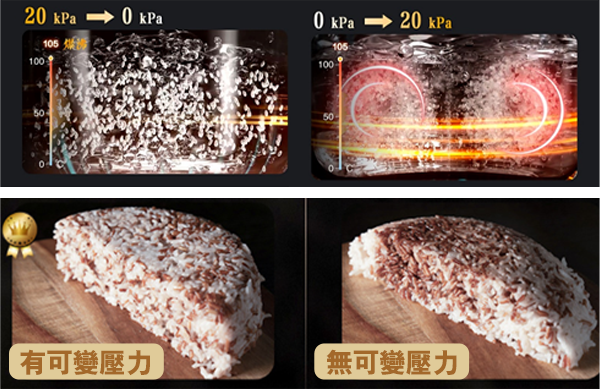 採用壓力加壓加熱循環,在 105°C 加壓和快速減壓之間交替進行,產生強烈的對流,使每一粒米都蓬鬆翻滾。這種動態運作防止米粒沉降,確保熱量均勻滲透,從而使米飯更加香甜蓬鬆,每一口都彈牙爽口。