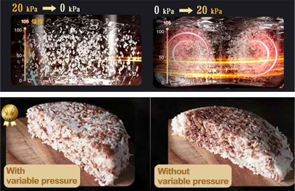 Our pressure-driven heating cycle alternates between 105°C pressurization and rapid pressure release, creating an intense burst of convection that lifts and stirs every grain.