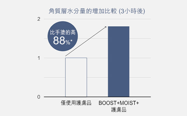 一次使用 5 分鐘,3 小時後角質層的含水量比人手塗抹增加 88%*