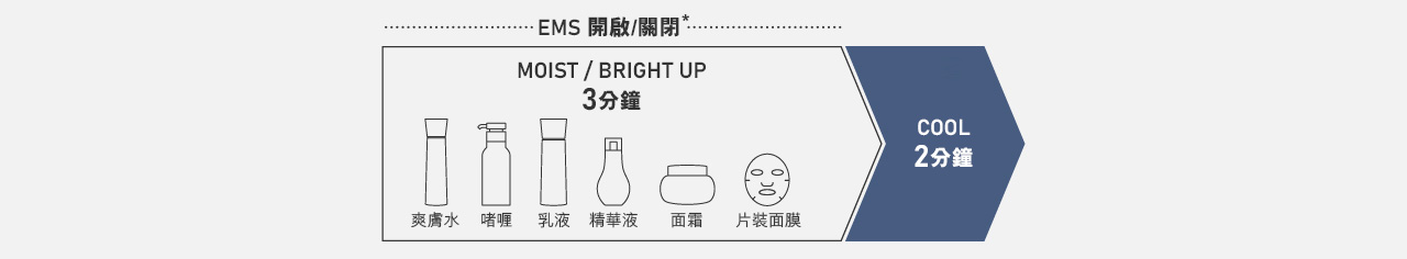 選擇「MOIST 模式」時,可開啟 EMS 提拉肌膚*3。同時進行臉部肌肉訓練*4。