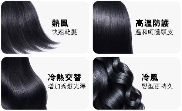 自動循環調節切換冷風和熱風,撫平毛躁,令髮絲柔順有光澤。