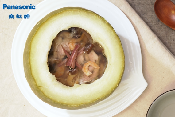 - 把冬瓜盅放入 Panasonic 蒸氣焗爐 NU-SC300B內,選擇「Prolonged」(慢蒸模式) ,設置一小時。