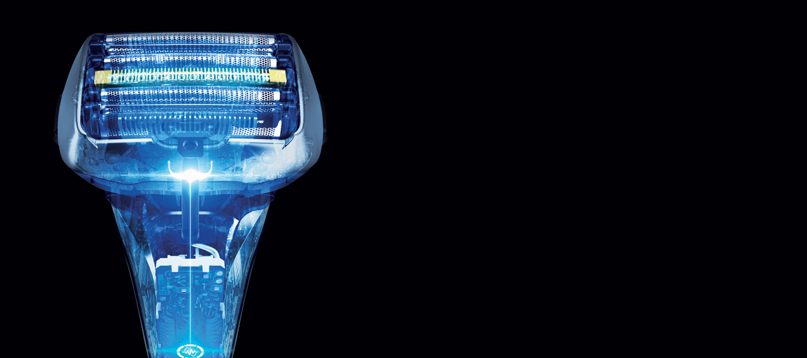 Gyro-omnidirectional 5-blade system with 5D active suspension pivot head and skincare rollers to reduce friction and trace every contour on face