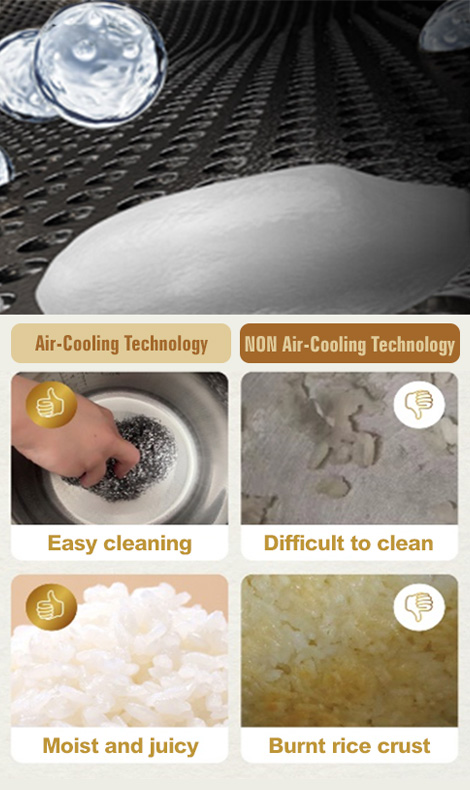 Made from SUS 316L, a high-quality food-grade stainless steel, The bottom of the inner pot has a shark-skin pattern design, which is high-strength and dense, reducing the surface area between rice grains and the inner pot, It is scratch-resistant and non-stick, ensuring durability and a lasting cooking experience.