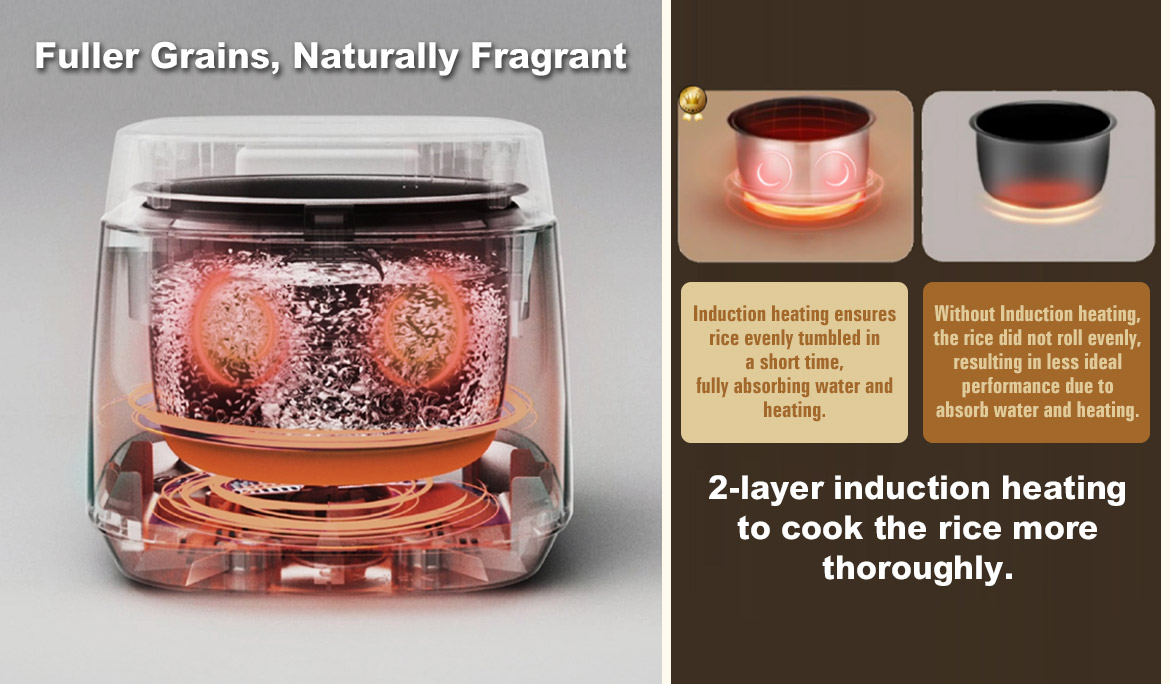At the optimal 50°C, gentle warming rapidly activates the rice’s enzymes, unlocking amino acids that deepen the aroma and sweetness of the rice, making every bite more satisfying.